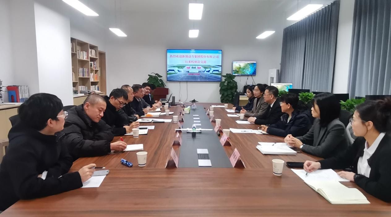 刘建强热烈欢迎新锦动力集团到访。侯伟介绍了学校与学院的发展及建设情况。姚煜涵介绍了新锦动力集团股份有限公司基本情况和合作意向。