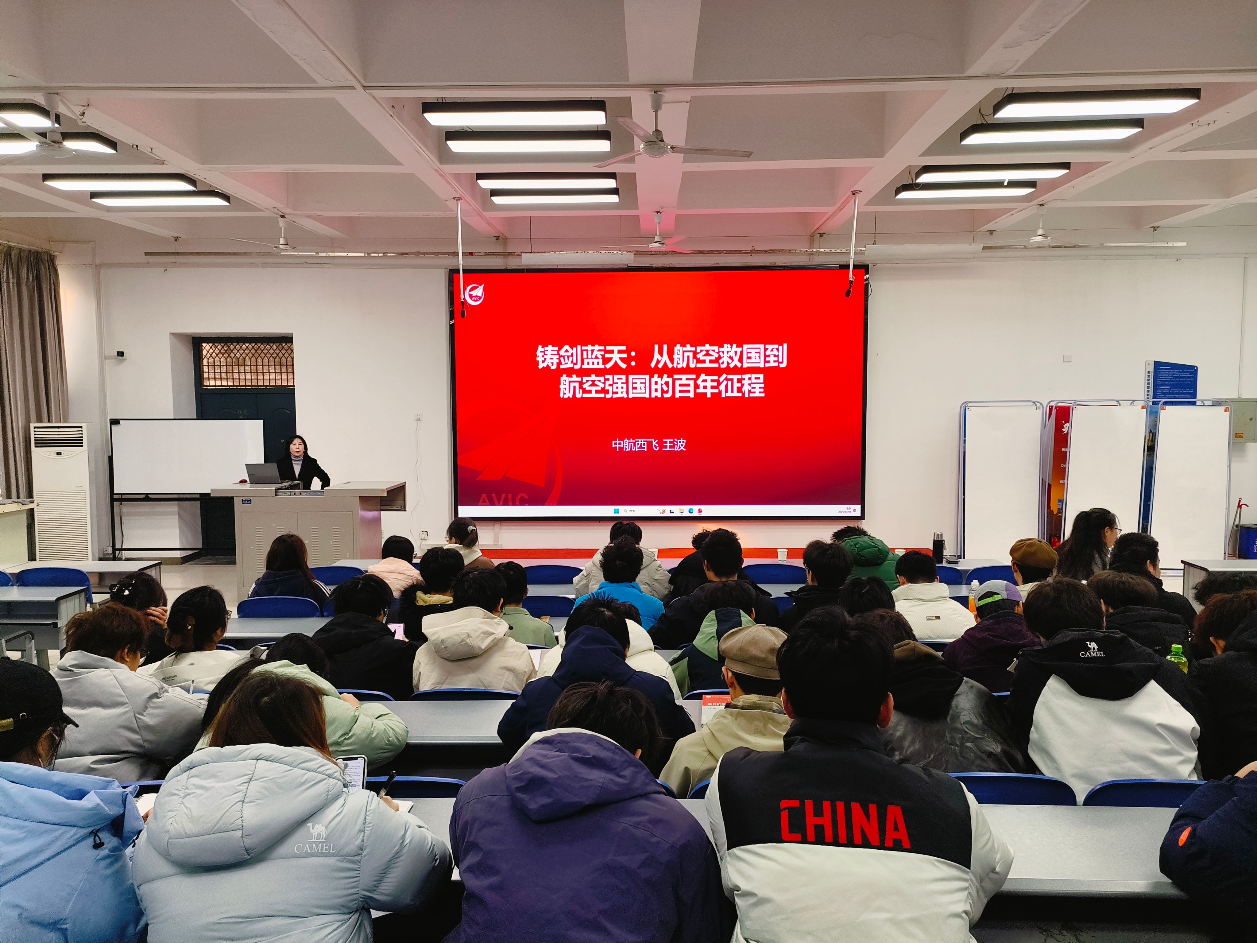 王老师强调,百年航程是一部与国家命运紧密相连的奋斗史,更是一部彰显民族精神、闪耀科技光芒的创业史。从战火纷飞中守护蓝天的英勇壮举,到和平年代里攀登科技高峰的默默耕耘,每一次突破、每一架战鹰的背后,都凝聚着无数航空人的智慧、汗水乃至生命。这段历史不仅铸就了今日中国航空工业的坚实根基,更沉淀下“忠诚奉献、自力更生、艰苦奋斗、勇攀高峰”的宝贵精神财富。